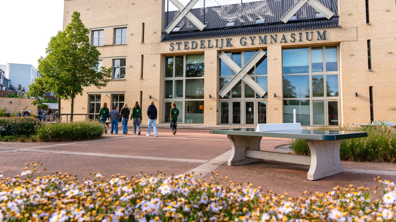 Bij het Stedelijk Gymnasium in Breda leiden leerlingen uit het eco-team en docent en duurzaamheidscoördinator Ragne van Engelen de gasten rond over het groene schoolplein. Zij vertellen enthousiast, “we hebben het plein omgetoverd tot een plein met veel groen. Onder andere een mussenhotel, herplaatste bomen vanuit de gemeente en een groene parkeerplaats. En niet alleen wij kunnen genieten van dit groene plein, ook de buurt maakt er gebruik van. De volgende stap? Groene fietsenrekken, een buitenlokaal en nog veel meer”.