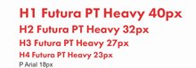 De basisopmaak voor teksten kent 3 varianten van de Futura: