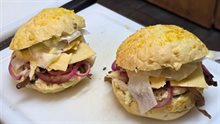 Bij de Lunchroom De Looierij zijn drie varianten van Broodje Land van Cuijk te koop: een broodje met kip, buikspek of oesterzwam met lekkere (en lokale) toppings.