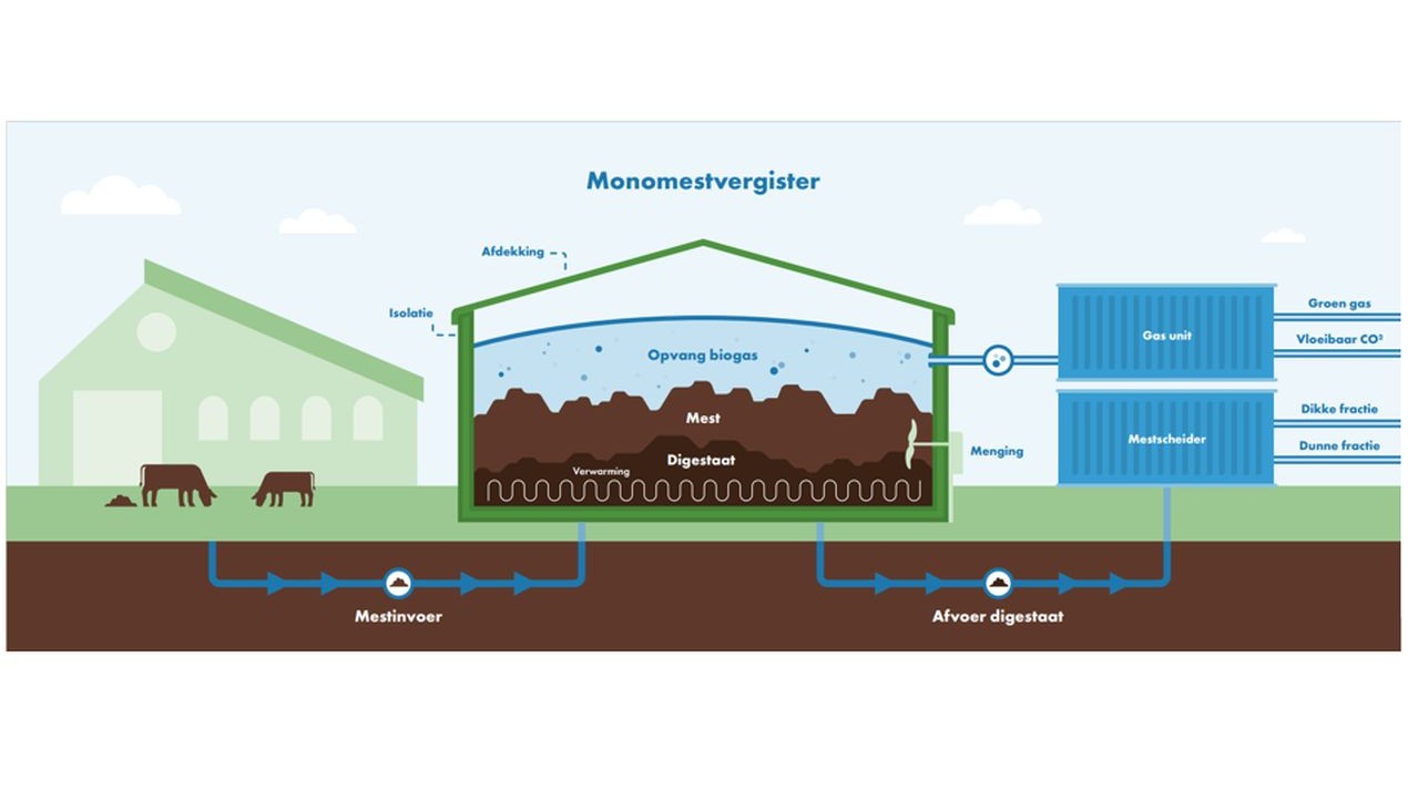 Bekijk de afbeelding van de monomestvergister (pdf, 325 kB) in groter formaat.