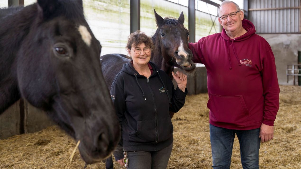 Iedere dag verzorgen Marcel en Lies met zichtbaar veel liefde ‘hun’ viervoeters, die 24 uur per dag toegang hebben tot de vrijloopstal, een wei en een zandbak. Een instrooimachine is aangeschaft om het stro te verspreiden. Marcel en Lies kennen ieder paard bij naam. Eigenaren komen soms van ver: uit Den Haag, uit Vlaardingen. “Enkelen komen meerdere keren per week naar hun paard kijken, dat is helemaal goed.” Het stel kan nog niet leven van het paardenrusthuis. Over een paar jaar, wanneer alles op z’n plek staat, hopelijk wel. Ze hebben nog een perceel met snijmaïs – “dat geeft de minste rompslomp” –, de andere gronden zijn verkocht.