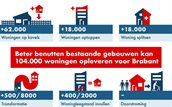 Bij woningbouw wordt vooral gedacht aan nieuwbouw op lege plekken in een stad of dorp of aan het bouwen in een weiland aan de rand van een dorp. Maar ook bestaande woningen en gebouwen kunnen (beter) benut worden. Uit onderzoek blijkt dat hiermee in Brabant tot maar liefst 104.000 woningen gecreëerd kunnen worden.