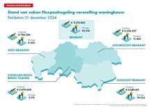 Met de bijdrageregeling Stimulering woningbouw Noord-Brabant 2023 (beter bekend als de ‘flexpoolregeling’) zijn vanuit de 1e en 2e tranche middelen beschikbaar gesteld om gemeenten extra capaciteit en ondersteuning te bieden voor de woningbouwversnelling, de opgaven rond wonen en zorg en het uitvoeren van de vier regionale woondeals.