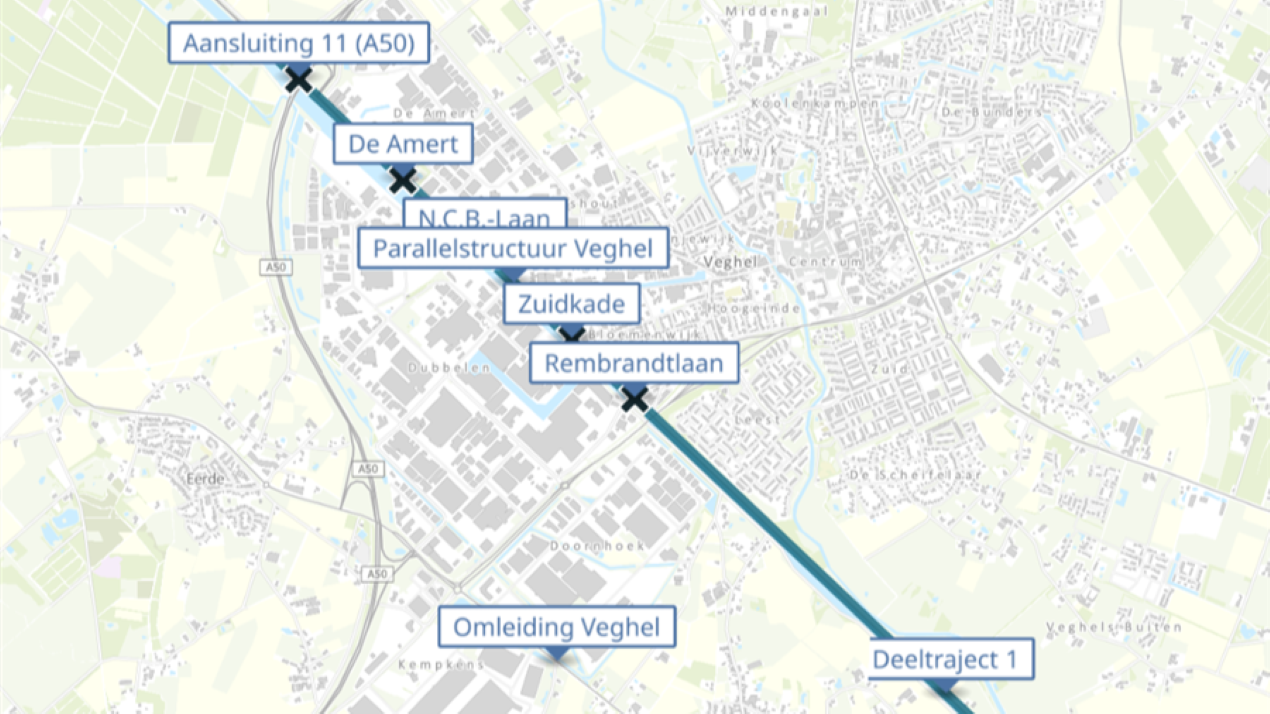 We zien tegenstrijdigheden in belangen terug in de reacties. Een voorbeeld hiervan is de situatie in Veghel. Waar er zowel zorgen zijn over behoudt van de weg bij het huidige tracé door Veghel heen, als bij het realiseren van een omleiding.