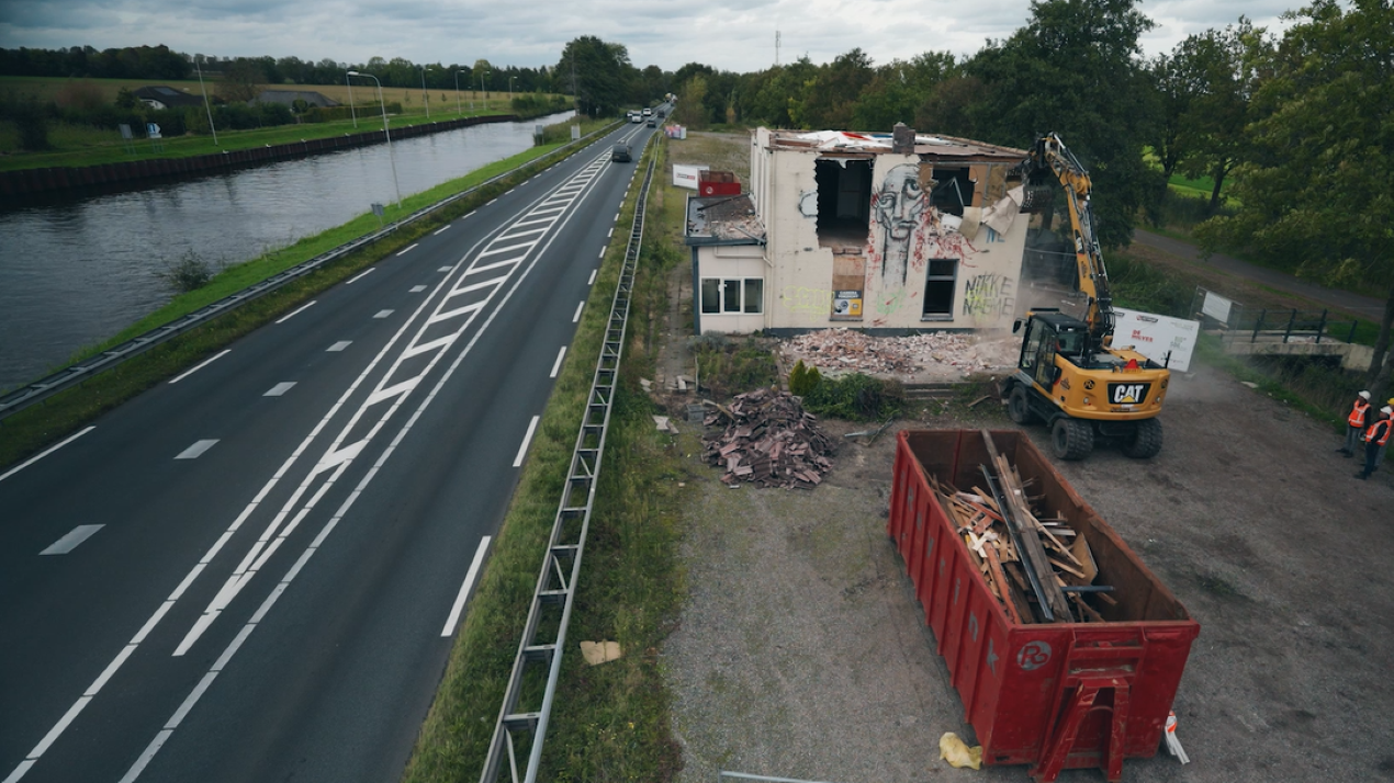 Bekijk filmpje op YouTube: Sluiten en weghalen op- en afrit van wegrestaurant De Sluis langs N279