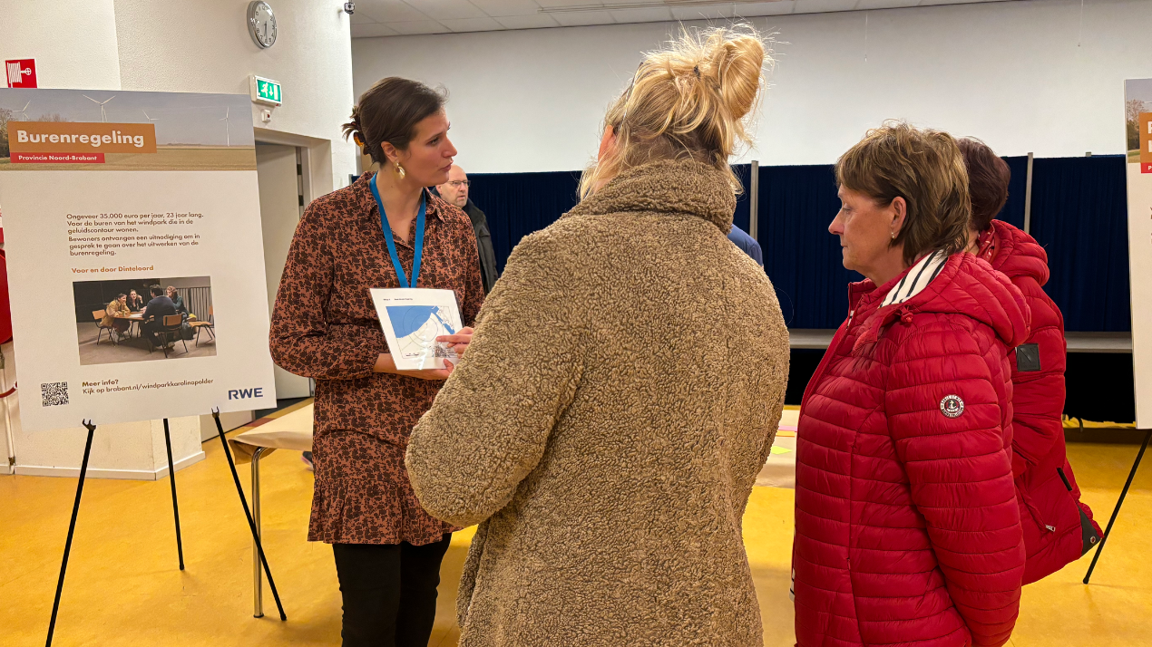 Op woensdag 13 november organiseerden de Provincie Noord-Brabant en RWE een inloopbijeenkomst. Inwoners van Dinteloord kregen informatie de vier nieuwe windmolens in de Karolinapolder. In het totaal bezochten 114 mensen deze bijeenkomst